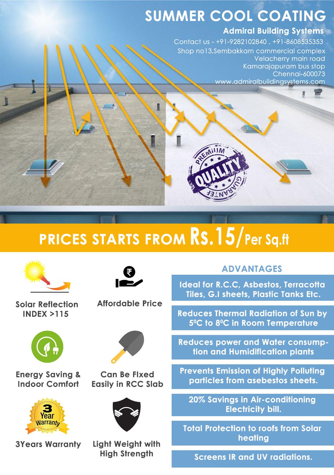 Coverage : 250 to 300 sqft per 20 ltr can, warranty 7 years, PUD with acrylic admixed with nano fiber, MRP ; Rs5000 per 20 ltr can.